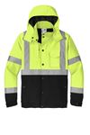 • 100% polyester 300-denier ripstop shell with durable water-repellent (DWR) finish • 4.6-ounce, 100% poly microfleece upper body lining • 3-ounce quilted polyfill lower body lining • 2-ounce quilted polyfill hood and sleeve lining • Black bottom front and lower sleeves for a cleaner appearance • Fabric waterproof rating: 5000MM • Fully seam-sealed • Adjustable rain hood • Durable, reflective 2-inch tape meets ANSI 107 requirements • Full-length exterior storm flap • Left chest pocket • Right chest pocket • Two lower front pockets • Center front zippered pocket to hold a tablet • Mic clips at shoulders • Elastic cuffs • Elastic hem • Decoration access pocket • This garment must be fully zipped to be in compliance with ANSI 107 standards