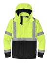 • 100% polyester woven 300-denier oxford shell with durable water-repellent (DWR) finish • 5.2-ounce, 100% polyfill insulation, box diamond quilted body and sleeve lining • Black bottom front and lower sleeves for a cleaner appearance • Fabric waterproof rating: 5000MM • Fully seam-sealed • Adjustable, zip-removable rain hood with hook and loop closure and toggles • Durable, reflective 2-inch tape meets ANSI 107 requirements and provides 360-degree visibility • Full-length exterior storm flap • Left chest bellows pocket • Two open lower front pockets • Molded center front zippered closure • Elastic cuffs • Elastic hem • Decoration access pocket • This garment must be fully zipped to be in compliance with ANSI 107 standards
