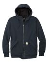 • This rain-blocking hoodie is work-ready. • 10.5-ounce, 50/50 cotton/poly blend or 59/41 cotton/poly blend with Rain Defender durable water-repellent finish (Black, Carbon Heather, New Navy)* • 100% polyester thermal lining retains warmth • Attached thermal-lined three-piece hood with drawcord closure • Full-length brass front zipper • Two front hand warmer pockets with flaps for added security • Stretchable, spandex-reinforced, rib knit cuffs and waistband • Interior pocket with zipper closure • Hidden media pocket • Locker loop • Carhartt label sewn on left hand warmer pocket • Loose fit • *Please note: Select colors in Carhartt fleece are currently transitioning from a 50/50 cotton/poly blend to a 59/41 cotton/poly blend. Weight and fabric properties remain the same. Your order may contain a combination of both fabrics.
