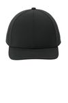 • 94/6 poly/spandex micro ripstop • Durable water repellent (DWR) finish helps keep cap afloat in water • Moisture-wicking sweatband and front panels lining • Breathable oval pattern perforation in mid and back panels • Structured • Mid-profile • Curved bill • Matte black silicone O on back • 7-position adjustable snapback closure