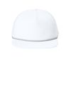 • With its two-tone white/grey rope, this cap combines performance features with a retro look and feel. • 94/6 polyester/spandex micro ripstop • 100% polyester brushed twill underbill • Gusty grey underbill • Two-toned white/grey rope • Durable water repellent (DWR) finish helps keep cap afloat in water • 5-panel with flat bill • Moisture-wicking sweatband and front panel lining • Breathable oval pattern perforation in mid and back panels • Lightly structured with lined mesh flap on interior front panel • Low-profile • 7-position adjustable snapback closure • Matte black silicone O icon at left of keyhole • **